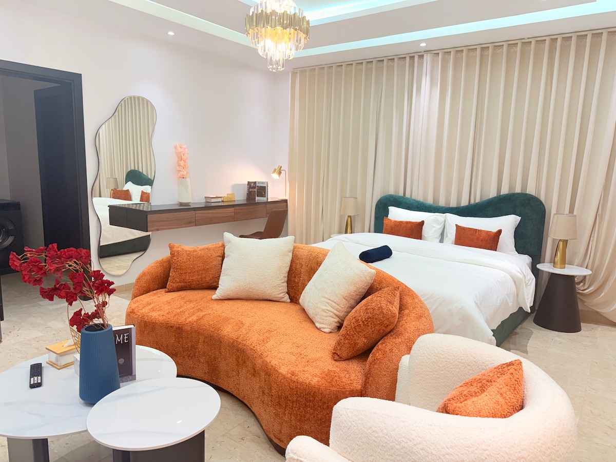 Nuestro elegante y moderno apartamento está situado en el corazón de la ciudad, a solo 12 minutos en coche del aeropuerto y del mar Rojo. Te encontrarás rodeado de restaurantes, mercados y entretenimiento. El apartamento cuenta con una amplia sala de estar con un nuevo televisor inteligente LG de 75 pulgadas con Netflix y Shahid VIP. Por las mañanas, despierta con una taza de café de nuestra máquina Nespresso. En todo el apartamento disfrutarás de muebles de lujo y una decoración cuidada que crea un ambiente acogedor pero refinado.