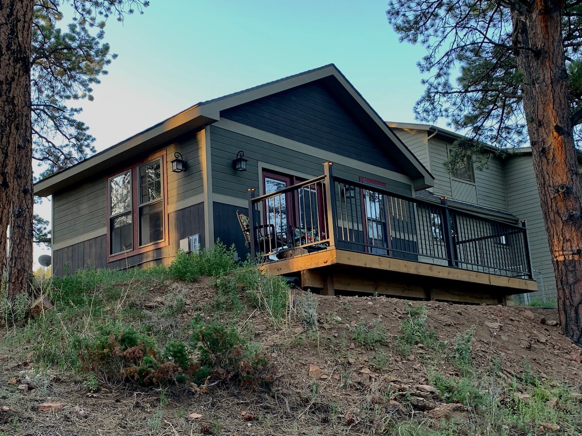 ¡Una escapada única y pacífica a la montaña cerca de Denver con trineos y senderos en la propiedad! Escapada de verano perfecta con vistas increíbles. -11 acres con senderos/campo de ninja/tirolina - Vistas amplias. -2 salas de estar - Cocina equipada/Comedor grande para 8 personas -12 minutos a Conifer/ 1 hora 30 minutos a Breck/40 minutos a Denver/32 minutos a Red Rocks - La unidad de tierra de 5 millas 4x4 de noviembre a mayo es ESENCIAL. - Sin aire acondicionado: Conifer, NO Littleton temps. - ¡Excelente WIFI gratuito/llamadas WIFI pueden ser necesarias! - Fosa de gas que se puede rellenar localmente