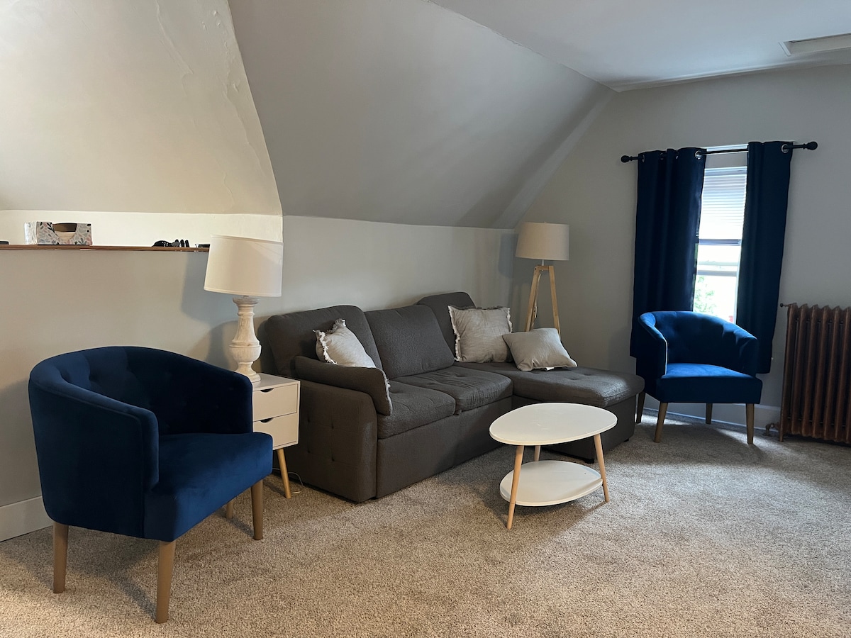 Dormitorio tranquilo, salón/comedor y baño privado en una casa antigua, perfecta para una estancia corta o larga. Entrada privada. Cama doble y una cuna/colchón plegable. El espacio totalmente privado es realmente como un apartamento de un dormitorio. Ubicado a cinco minutos del Centro Médico Regional de DuBois y del centro de DuBois. A diez minutos del campus de DuBois Penn State. Amueblado de forma sencilla, pero cómodo. Cafetera (Keurig) y café. Aire acondicionado, microondas y nevera. Wifi. TV con cable básico. Se admiten mascotas.
