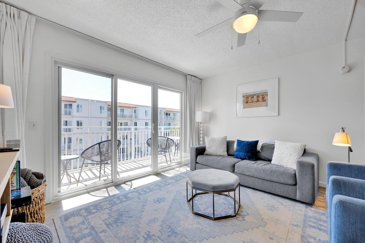 If you are interested in a great little getaway, this is it. Gated UPDATED BEACHY condo with private gated parking & pool. IDEAL LOCATION. Walk/Bike to the Beach, Pier Village Shopping, Restaurants & Entertainment. Custom made book with local recommendations included. Condo is setup similarly to a hotel suite with Kitchenette *see photos. Relaxing jetted tub&large shower Has washer/dryer, full refrigerator, Keurig coffee, WiFi, Roku Stick, Alexa, Amazon Music, Amazon Prime, Netflix.