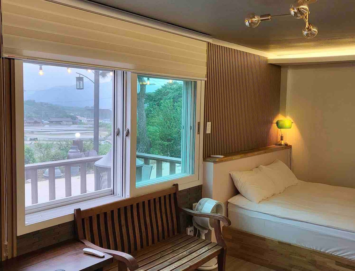 Disfruta de un descanso completo en un pequeño anexo en el corazón del tranquilo pueblo de Gurye. Hay Samkats, una pareja anfitriona y un perro llamado Half Moon en la casa principal. El anexo, que es un alojamiento, es una casa antigua que ha sido remodelada con las vigas de una casa antigua de 50 años. Es bueno para gente que le gustan los libros y los gatos y quiere descansar tranquilamente. El paseo marítimo Jirisan Dulle-gil y el río Seomjin están cerca. * La casa está en el centro del pueblo, así que abstente de hacer ruido excesivo, ya que puede ser una excusa para los aldeanos. * No hay televisión ni wifi en la casa. * Es una cocina pequeña con una estufa de inducción individual y un quemador portátil, por lo que solo es posible cocinar fácilmente. * Es una casa de campo, por lo que incluso si pones en cuarentena, los insectos pueden salir de vez en cuando. Además, el pollo del vecino es grande al amanecer, así que si tienes sueño ligero, toma nota antes de hacer una reservación. Cuando uses la barbacoa, trae carbón vegetal y plancha desechable y trae verduras de jardín cómodamente. Prepara leña cuando uses la fogata.