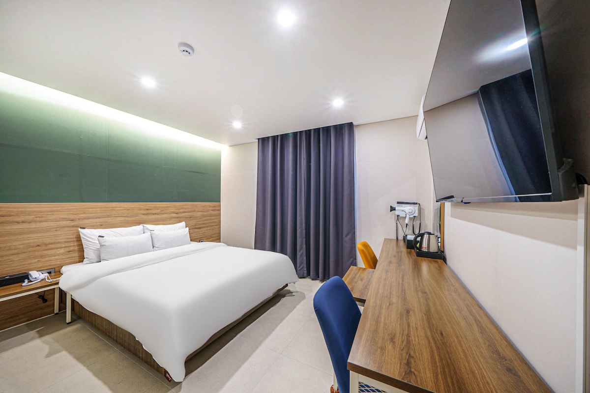 Un acogedor refugio para tu viaje a Jeonju, una habitación estándar con un toque moderno La habitación estándar del Jeju J Brown Hotel es un espacio que combina comodidad y decoración elegante para olvidar la fatiga del viaje. La iluminación tranquila y el diseño moderno que se siente en el momento en que abre la puerta y entra le brindan el descanso más perfecto. La acogedora cama con la mejor ropa de cama le ayuda a dormir profundamente incluso en destinos desconocidos, y el interior de la habitación, que está cuidadosamente organizado sin desorden, no es suficiente para disfrutar de unas vacaciones relajantes. Tenemos un espacio eficiente para clientes de negocios y comodidad para viajeros. Un día especial en Jeonju, crea recuerdos preciosos en un espacio con el estilo único de J Brown. Durante tu estadía, puedes disfrutar de la comodidad del hogar y la calidad del hotel al mismo tiempo.