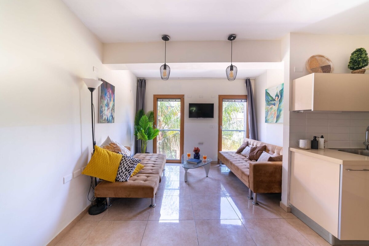 Departamento de 2,5 dormitorios totalmente equipado para 4 huéspedes ,incluye una cama doble en el dormitorio y otro sofá cama en la sala de estar. El apartamento tiene un hermoso patio cubierto y un encantador jardín. El apartamento está en la planta baja de un edificio de 2 plantas. Hay un espacio de estacionamiento privado disponible en las instalaciones. El apartamento está en un vecindario tranquilo en la ciudad de Rehovot, a 20 minutos en coche del aeropuerto Ben-Gurion y a 30 minutos de Tel-Aviv.