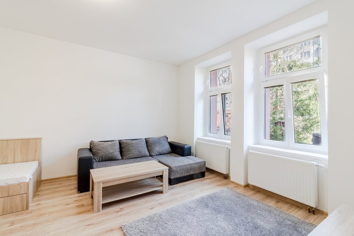 Apartamento en la planta baja, a 1 minuto a pie de la plaza Masarykovo náměstí. Todo lo que necesita está literalmente a la vuelta de la esquina: tiendas, bancos, oficinas de correos, oficinas, iglesias, teatro, cine, biblioteca, museo, cafeterías, restaurantes, comedores, transporte público, gimnasio, parque, zoológico, etc. Un lugar realmente estratégico. Cocina equipada, mesa de comedor y escritorio, mucho espacio de almacenamiento en el armario y el baño. La cocina está equipada con todos los utensilios, café, té, azúcar, sal, pimienta, aceite de oliva, vinagre. Cama cómoda y cortina opaca para un sueño de calidad. Lavadora, secadora, plancha, tabla de planchar.