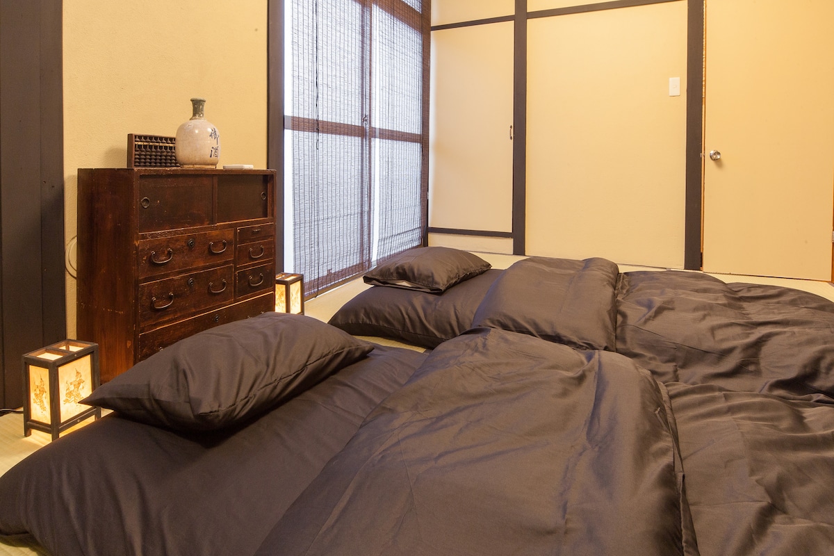 El machiya de 100 años, bellamente renovado, disfruta de todo el encanto del espíritu tradicional y moderno de Japón: tatami, puertas correderas de madera con tabique wa-shi, jardín privado y una lujosa comodidad moderna. Ubicado dentro de la tranquila zona del templo Chomyo, a solo 5 minutos a pie de la estación de metro/Keihan Sanjo, le prometemos una experiencia de inmersión total en Kioto. También es conveniente caminar a Gion y al santuario Heian. Supermercados y restaurantes increíbles en el vecindario a su servicio.