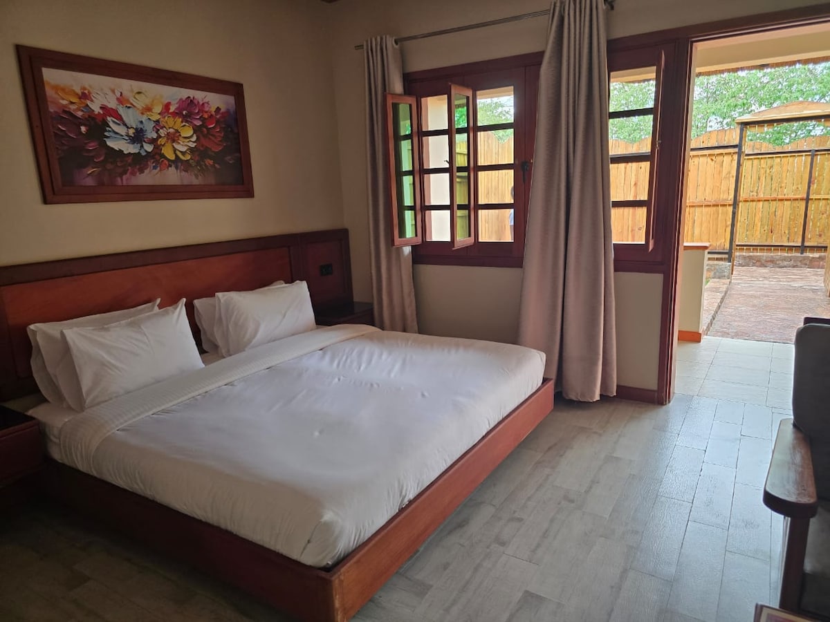 A peaceful retreat just moments from the Source of the Nile, this room offers a calm, refreshing escape surrounded by nature. Wake up to the gentle sounds of the river and fresh air, with beautiful scenery right outside your door. it easy at this unique and tranquil getaway.