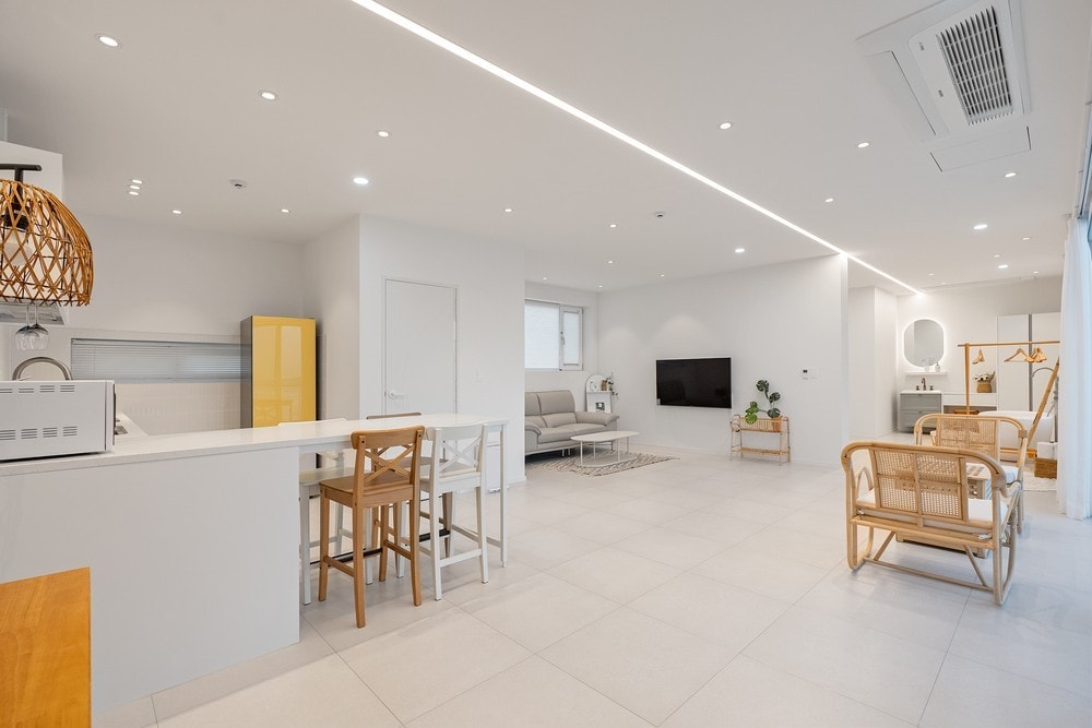 ¿Cuán importante es el valor del espacio para poder hablar con alguien cercano? ¿Cómo fue su viaje a la hermosa Namhae? La forma de conservar la felicidad y los recuerdos de un viaje durante mucho tiempo radica en las "historias" que se comparten al final del día. "La vista de tu perfil desde el pueblo de Darangee era muy bonita" Está en un 'buen espacio' donde surgen naturalmente conversaciones encantadoras. Nos esforzamos por brindar 'buenos momentos y espacios' que te hagan sonreír felizmente durante tu estancia. La casa privada 'Bongjeon Darak' en Namhae está ubicada en el centro de Namhae-gun. La mayoría de los lugares turísticos son accesibles en 30 minutos o menos. Ofrecemos servicios de vivienda privada para un solo equipo en un terreno de 265m2, incluyendo interiores y exteriores. Consta de un patio de adoquines decorado con un diseño de interiores emocional, una fachada de casa antigua, un interior de galería en tonos blancos y madera, una hermosa bañera de agua caliente y una sala de té, y un ático.