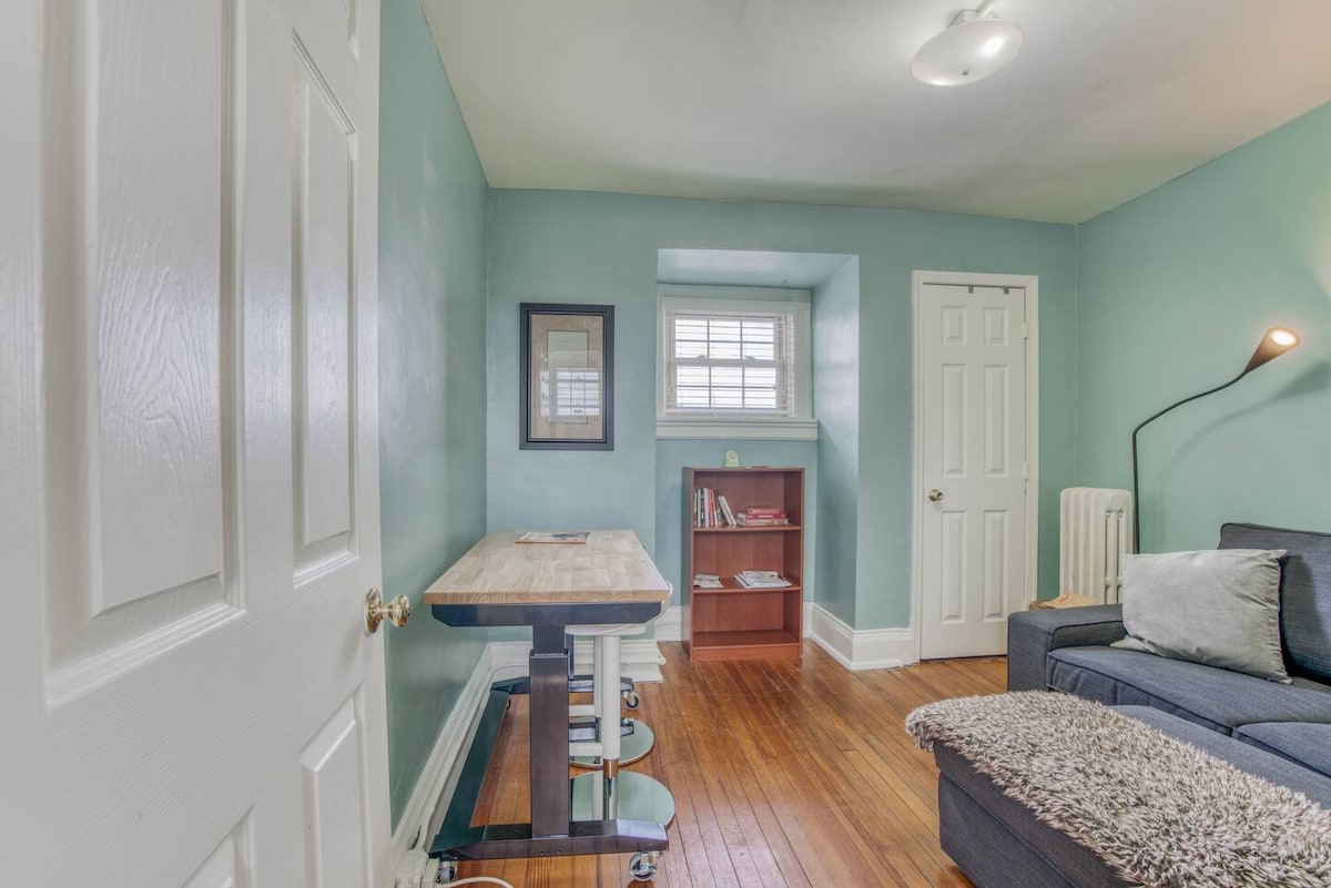 Artists and creatives are welcomed! Stay at our 1920 rowhouse with its mix of 70's era textiles and contemporary style. Only two steps to a welcoming porch and keyless entry to our foyer/Shared hall. Straight ahead is Sun Apartment, private studio with stocked kitchen, comfiest 5 star bed, private bath, laundry and back yard access. Yoga room/ office located in shared hall. No need for a car in the heart of Hampden's Avenue just a block away. LGBTQ+ friendly
