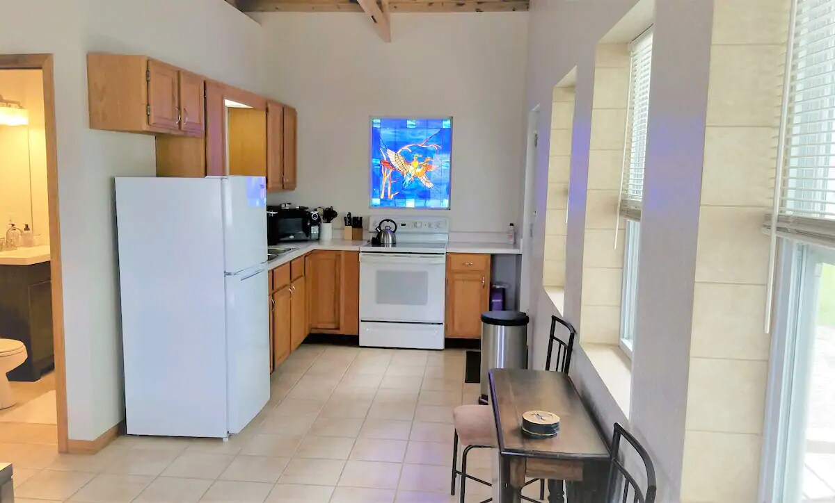 Take a break and unwind from the hustle and bustle in this charming, private guest house surrounded by nature. Enjoy quiet morning walks, cozy evenings indoors, and plenty of space to relax. Features include a fully equipped kitchen, comfortable bedroom, modern bath, and high-speed Wi-Fi. Located just minutes from town.. Perfect for a weekend getaway or extended stay.