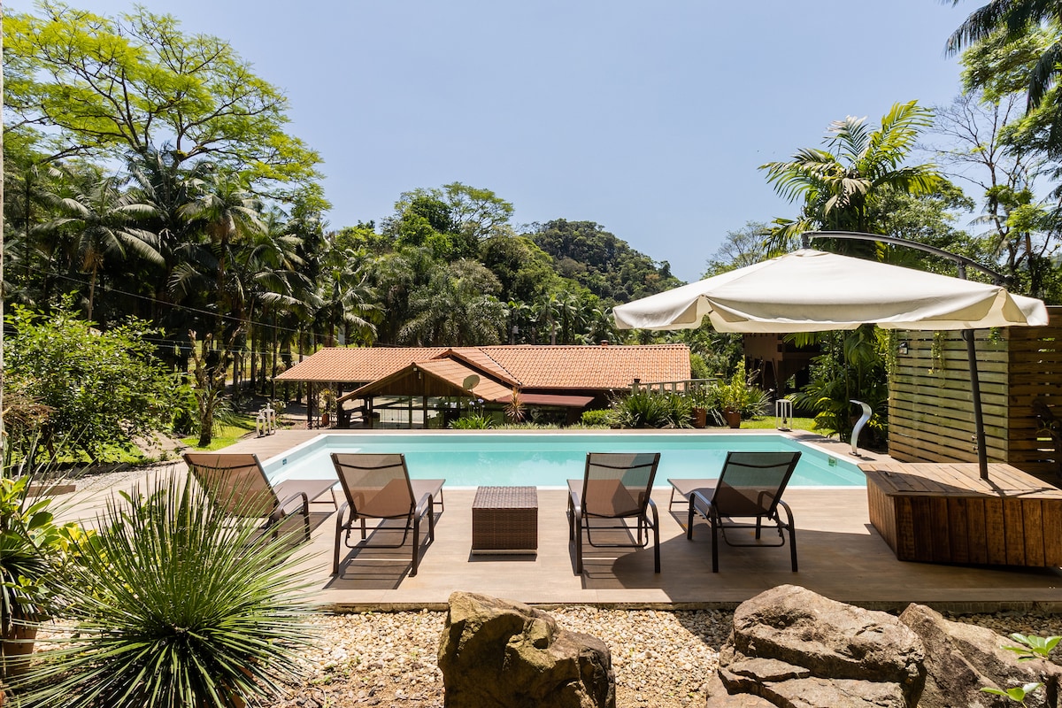 ¡Disfruta de la tranquilidad en la colina de Río da Prata en Pirabeiraba, Joinville! Con 7 habitaciones dobles y 1 dormitorio con 4 camas individuales, nuestra propiedad ofrece una piscina climatizada, capilla (parte de reserva), estufa de leña, arroyo, lagos, fogata, senderos, campo de fútbol, voleibol, piscina y mucha zona verde. Exclusividad garantizada para tu grupo. - Calendario completo para 2026 abierto @ColinaRioDaPrata