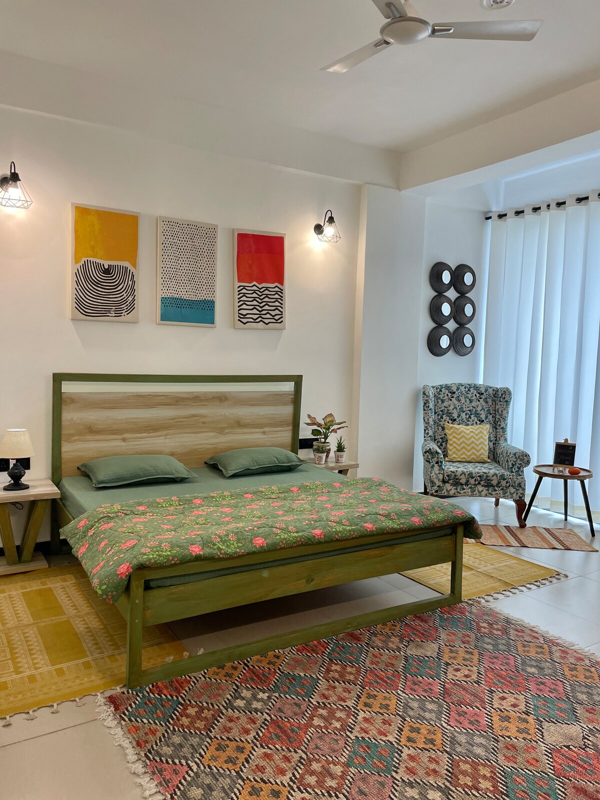 A peaceful yoga-inspired stay in Tapovan, Rishikesh, designed for calm, balance, and mindful living. Featuring a dedicated floor-based yoga & meditation space, natural textures, warm lighting, and a soothing layout that helps you slow down and reset. Ideal for yogis, solo travelers, couples, and spiritual seekers looking for a quiet retreat near yoga schools, cafés, and nature. A soulful stay where you rest, breathe, and reconnect.