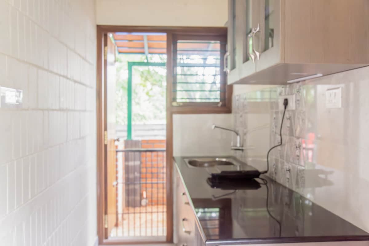 Your private 1BHK sanctuary! Enjoy a peaceful stay with a comfy queen bed, AC, high-speed Wi-Fi, Smart TV (Netflix/Prime), and a functional kitchen with Power backup ensures uninterrupted comfort. Perfect for couples, solo travelers, or remote workers. Close to hospitals & cafes, with free parking available."