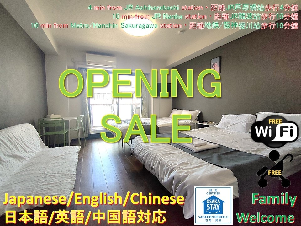 New building! Namba area, the center of Osaka! Namba, Nihonbashi, Dotonbori, Denden Town, Kuromon Market, Shinsaibashi! Easy access to Kyoto, Kobe, and Nara! 2 single beds! Pocket Wi-Fi, Toothbrush, Toothpaste, Shampoo, Conditioner, Body wash, Face wash etc. All free! ★If there is no room for your desired date, please contact us and we will recommend other accommodations that we manage. ★ [Airport/USJ pick-up & sanding] [Osaka, Kyoto, Wakayama 1-day tour] ★Bicycle rental now available★