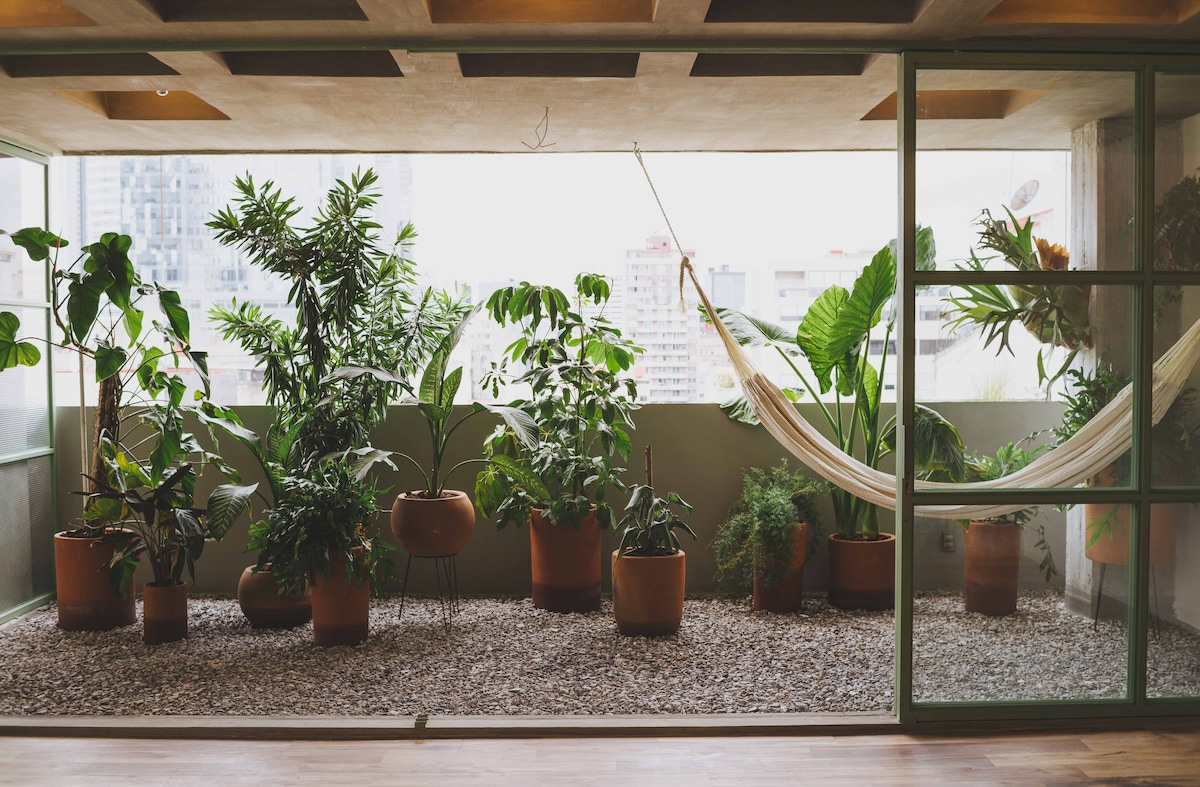 ¡Bienvenidos a nuestra casa invernadero en la Roma, cerca del Parque Río de Janeiro! Disfruta de un apartamento espacioso con aire acondicionado, cocina totalmente equipada y un patio privado convertido en una acogedora sala de estar llena de plantas. Renovado con estilo ‘Mid-Century Modern’. Tendrás una excelente estancia!
