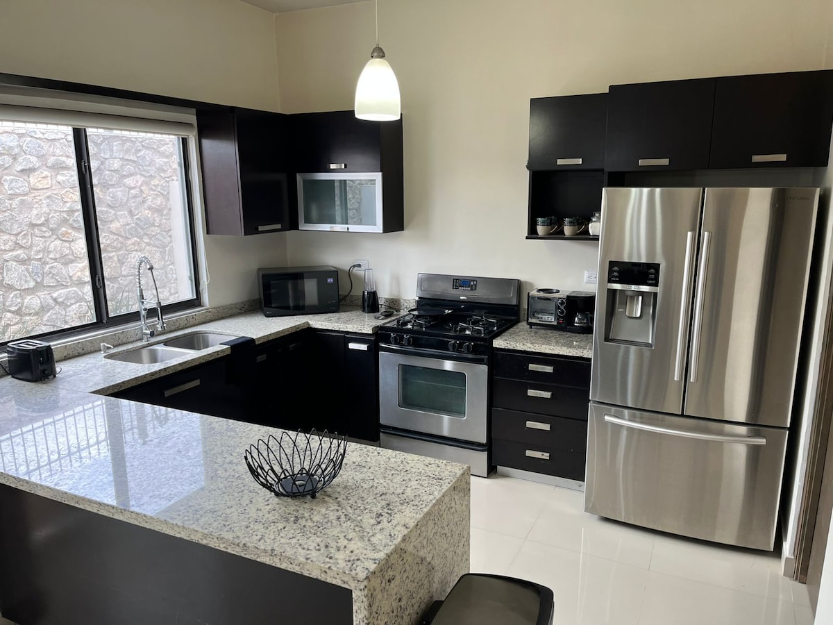 Dentro de una privada moderna con acceso controlado, tranquila y segura 👌🏽 Cuenta con 3 habitaciones con colchones extra confort tamaño queen 🛏️, cocina equipada 🍳 lista para que preparen sus comidas favoritas 🧑🍳, wifi de alta velocidad ⚡️ , Minisplits ❄️ 🔥 en cada habitación y planta baja y una Smart TV con HBO MAX, Disney+ y Netflix abierto. Fraccionamiento equipado con parque, juegos infantiles, porterías, trampolín y terraza para pasar una tarde agradable en familia o amigos