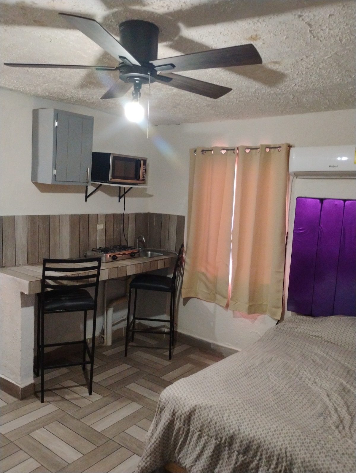 Disfruta de la comodidad de este alojamiento tranquilo y céntrico, a tan solo 5 min de consulado americano y plazas comerciales en vehículo. Este espacio cuenta con una habitación, cama matrimonial, mini split frío calor, clóset amplio, cocina equipada, sofá cama, comedor, wifi, smart tv. Ideal para estancias cortas o largas, tanto para viajes de negocios como de placer. Su ubicación estratégica te permitirá moverte con facilidad por la ciudad, ya sea que busques trabajar, descansar o explorar.