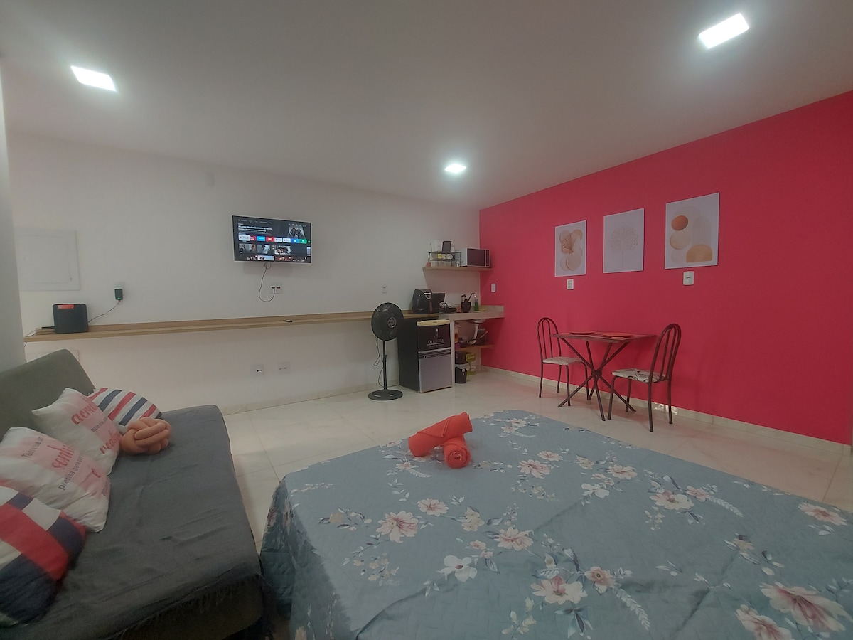 Ven a conocer y vivir una experiencia acogedora en este hermoso loft con decoración moderna, excelente ubicación y equipado con todo lo necesario para que tengas una estancia encantadora. Además de todo el placer y la satisfacción de recibirlo, destacamos en nuestro espacio internet Wi-Fi de alta velocidad, TV con acceso a las principales aplicaciones de streaming, cocina equipada, sofá cama ventilador, seguridad de acceso al edificio, sin mencionar la facilidad con el servicio de lavandería disponible para los huéspedes.