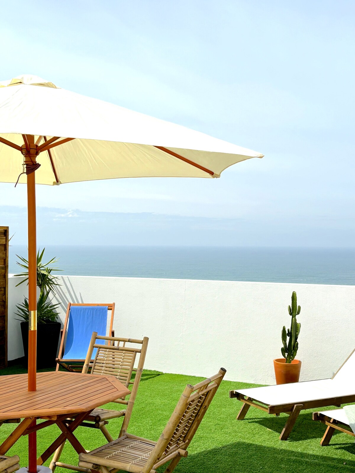 A newly renovated modern-coastal style Two bedroom apartment with spectacular views over the Atlantic Ocean and picturesque Nazaré Village and its hills, located in Sitio, a stone throw away from the Big Wave Lookout as well as Nazaré village and its beaches, whether watching the sun rise with a coffee, or the sun set with a glass of wine on the balcony you will be mesmerised by your surroundings. The apartment is perfect for couples and families on holiday, remote workers, long stays