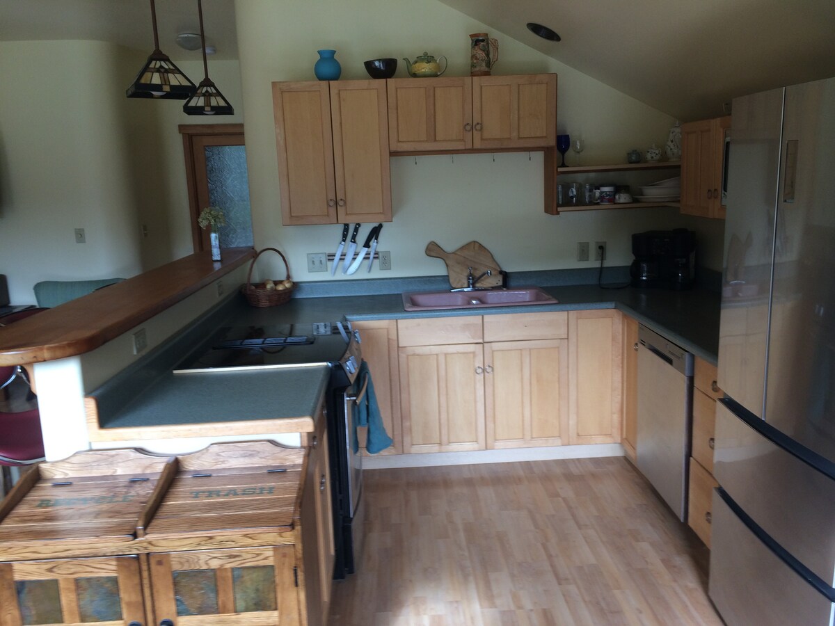 ¡Bienvenido a nuestro acogedor apartamento de Alaska! Nuestra casa de 1000 pies cuadrados está a solo 10 minutos de las tiendas y del aeropuerto, y cerca de senderos y playas cercanas. ¡A solo 3 minutos de la terminal de transbordadores del estado de Alaska! Después de un día de exploración, vuelve y relájate en la bañera de hidromasaje o duerme bien en tu cómoda cama tamaño king. Reserva tu estancia con nosotros y disfruta de la belleza de Alaska. ¡Romántico, ideal para familias, cocina totalmente equipada, recién remodelado y listo para ti!