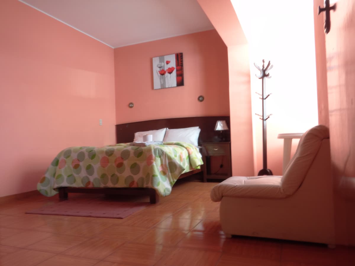 Disfruta de tu estadía en este céntrico hospedaje en pleno corazón de Huancayo, que cuenta con cama Queen y baño privado.