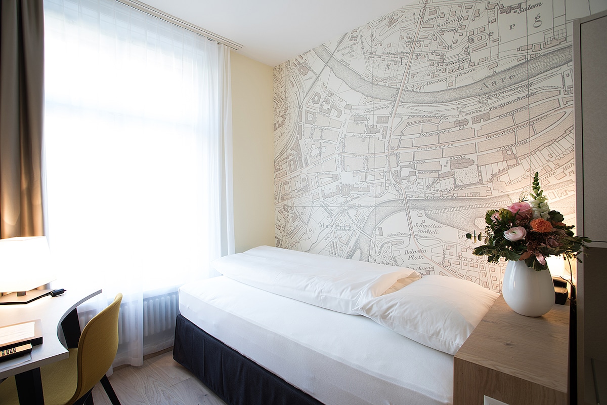 La pequeña habitación individual está amueblada con 1 cama y tiene un lavabo con agua corriente. Las toallas de cama y de felpa están incluidas en el precio de la habitación. ¡La habitación no tiene su propio inodoro y ducha! El inodoro y la ducha de uso compartido se encuentran en los pisos respectivos.