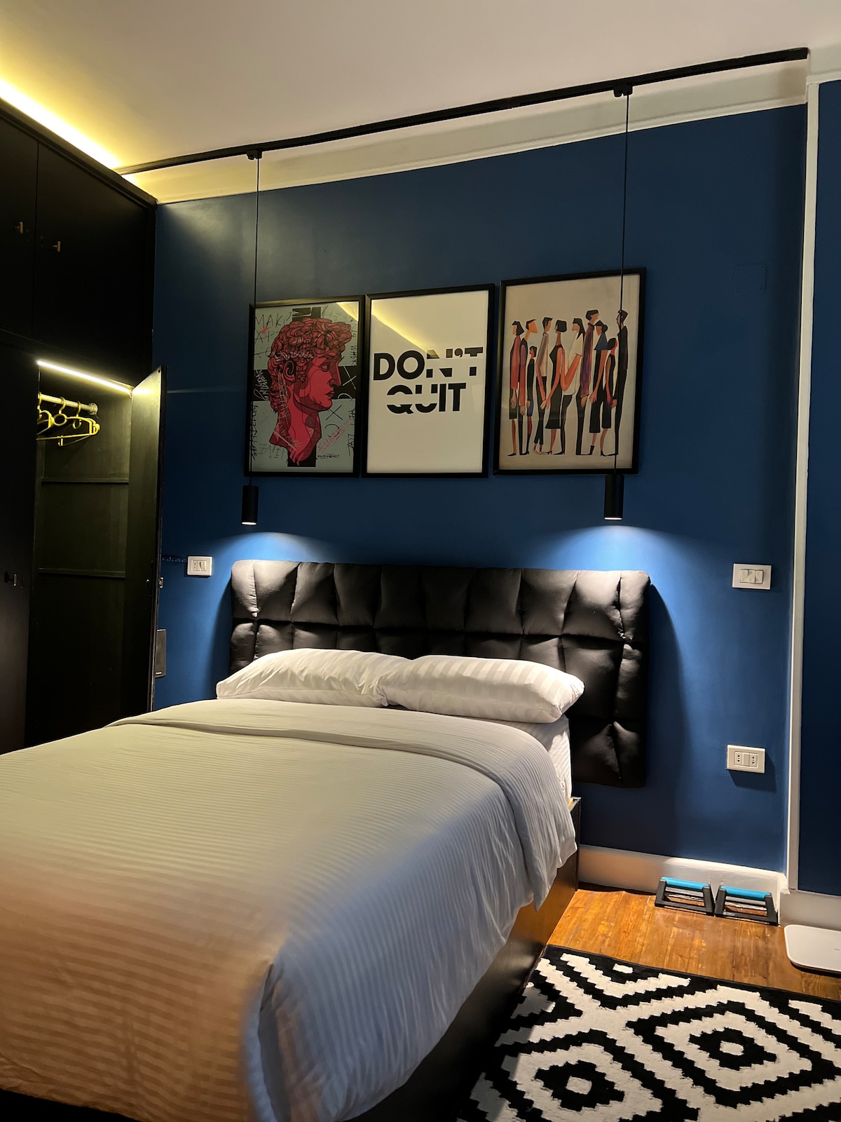 🏡 Elegante apartamento en el centro de la ciudad, ¡a solo unos pasos del metro más nuevo de El Cairo! Lo que te encantará: ✔ Ubicación privilegiada: a solo un minuto del aeropuerto, cafés y centros comerciales. ✔ Acogedor y bien diseñado: dormitorio con televisor inteligente y wifi rápido. Cama ✔ cómoda: colchón de alta calidad y sábanas de lujo para un sueño reparador. Extras ✔ atentos: ¡toallas limpias, artículos de aseo personal y una canasta de aperitivos de bienvenida! Nota: Tenga en cuenta que no se permiten grupos mixtos o parejas en el apartamento