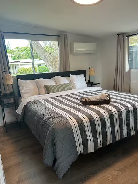 Bienvenido a nuestro acogedor estudio de un dormitorio ubicado en el corazón de North Shore, Oahu. A pocos pasos de la playa, este encantador espacio ofrece todo lo que necesitas para una estancia relajante, incluida una pequeña cocina y una sauna justo en la propiedad. A poca distancia a pie de la famosa bahía de Waimea y otros lugares pintorescos, y a poca distancia en auto de restaurantes, tiendas de comestibles y actividades al aire libre. ¿Necesitas una casa de 4 dormitorios, que pueda acomodar hasta 9 personas más? ¡Haz clic en mis otros anuncios y escríbeme un mensaje!