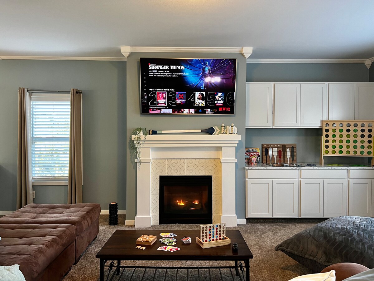 Alojamiento espacioso con más de 2000 pies cuadrados, cuenta con un televisor de 75 pulgadas. Agua blanda. El garaje privado mantendrá tu coche seguro y libre de nieve este próximo invierno. Una cama tamaño king y dos tamaño queen. Un minuto a US-131 y 5 minutos a la I-94. Cerca del centro de Kalamazoo, Western Michigan University, K College, Wings Event Center, Pfizer, Stryker y el zoológico aéreo. Ya sea que te hospedes por un corto tiempo o una estancia más larga, seguro que disfrutarás de esta casa grande, segura y céntrica. El teclado proporciona auto check-in.