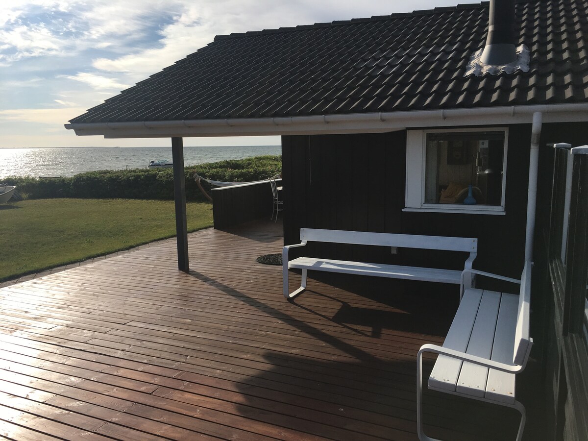 Nueva casa de verano en primera línea de mar y con playa privada en la bahía de Musholm, a solo 1 hora de Copenhague. La casa tiene 50 m2 y un anexo de 10 m2. La casa tiene un hall de entrada, baño/aseo con sauna, dormitorio y una gran cocina/sala de estar con nicho. Desde el salón se accede a un hermoso y amplio altillo. La casa tiene aire acondicionado y estufa de leña. El anexo contiene una habitación con cama doble. La casa y el anexo están conectados por una terraza de madera y hay una ducha exterior con agua caliente. Dormitorio en la casa, así como altillo y nicho.