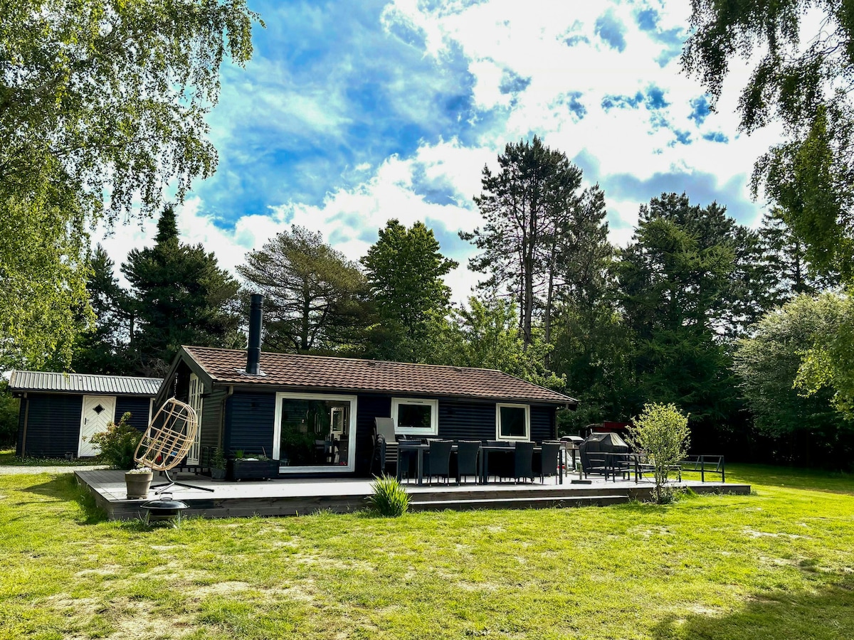 NOTA: LA LIMPIEZA FINAL ESTÁ INCLUIDA. El registro de entrada es los viernes. Cabaña de madera de 109 m² situada en la pintoresca Dalby Strand en Zelanda Occidental. La casa tiene 3 dormitorios, 1 baño grande y encantador con jacuzzi, 1 cocina grande en conexión abierta con comedor y sala de estar con una acogedora chimenea. La cabaña es luminosa y amigable y está ubicada en una parcela bien cuidada. Alrededor de la cabaña hay una gran terraza de azulejos, con muebles de patio y tumbonas. Hay una cochera privada, construida en madera redonda.