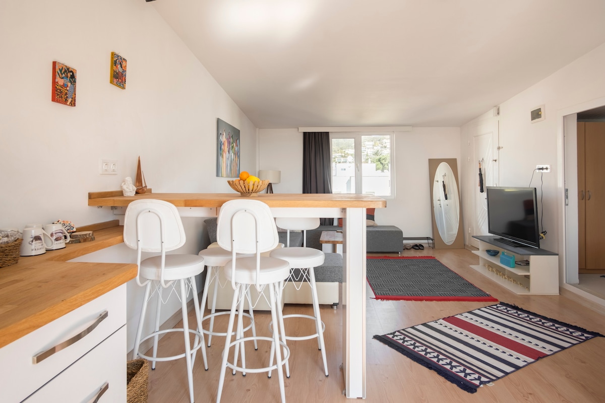 🌿 ¡Bienvenido al oasis de la ciudad pacífica en el corazón de Bodrum! Siente la tranquilidad en esta casa luminosa y espaciosa ubicada en el centro de Bodrum, a pocos pasos de la playa y de las principales atracciones. ☀️ Disfruta de grandes ventanales iluminados por el sol, una acogedora sala de estar, un balcón con vistas al mar y una cocina totalmente equipada. Descansa en el dormitorio tamaño queen y disfruta del ambiente cálido y acogedor del barrio de Bodrum. 🌺 Cuidaremos bien de ti.😇