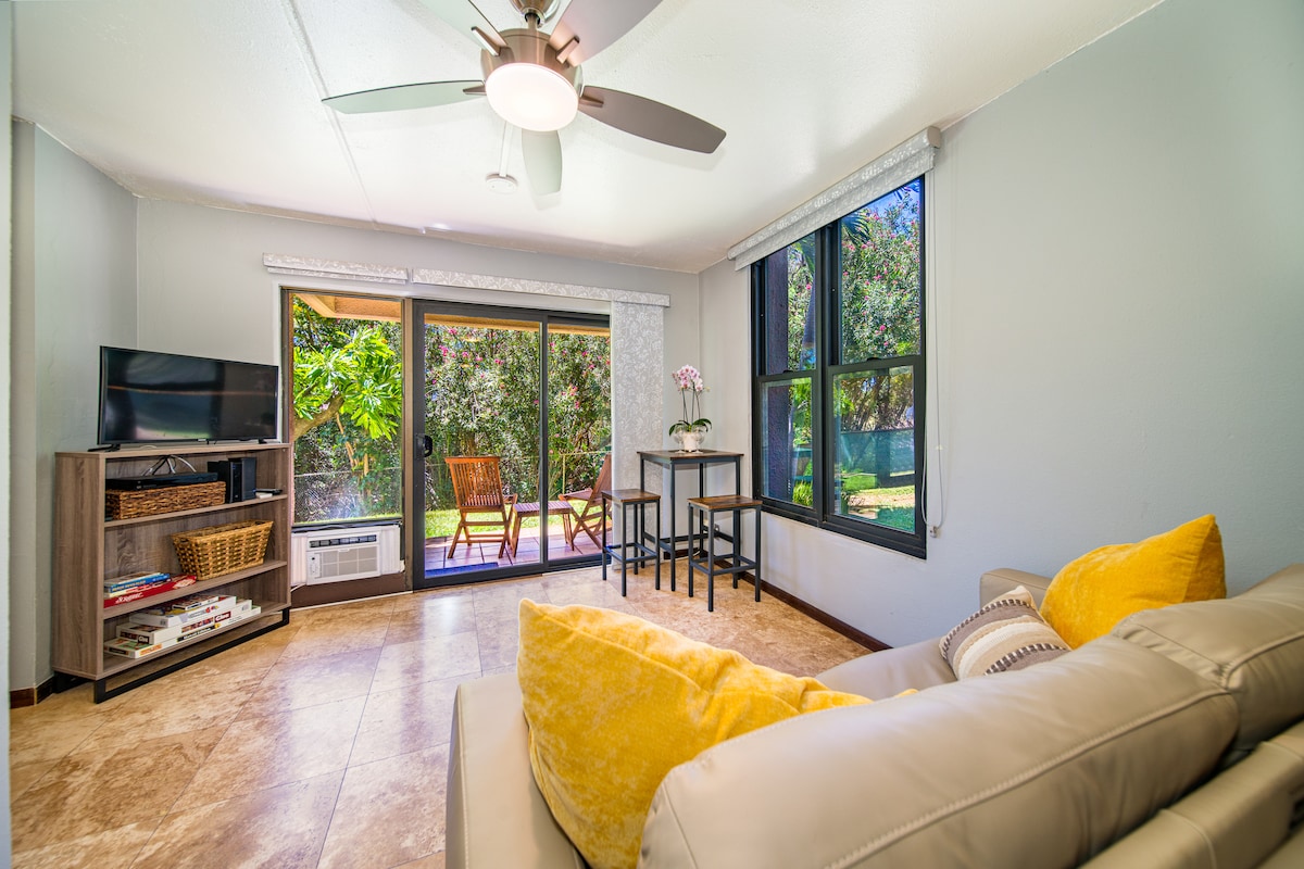 ¡Alójate a unos pasos de la impresionante playa de Kamaole! Este refugio de 1 dormitorio cuenta con una cama tamaño king, un sofá cama, aire acondicionado central y una cocina totalmente equipada para preparar comidas fácilmente. Relájate en tu patio privado después de un día en la playa. Rodeado de cafeterías y restaurantes, disfrutarás de la mezcla perfecta de comodidad y conveniencia. Aparcamiento gratuito incluido.