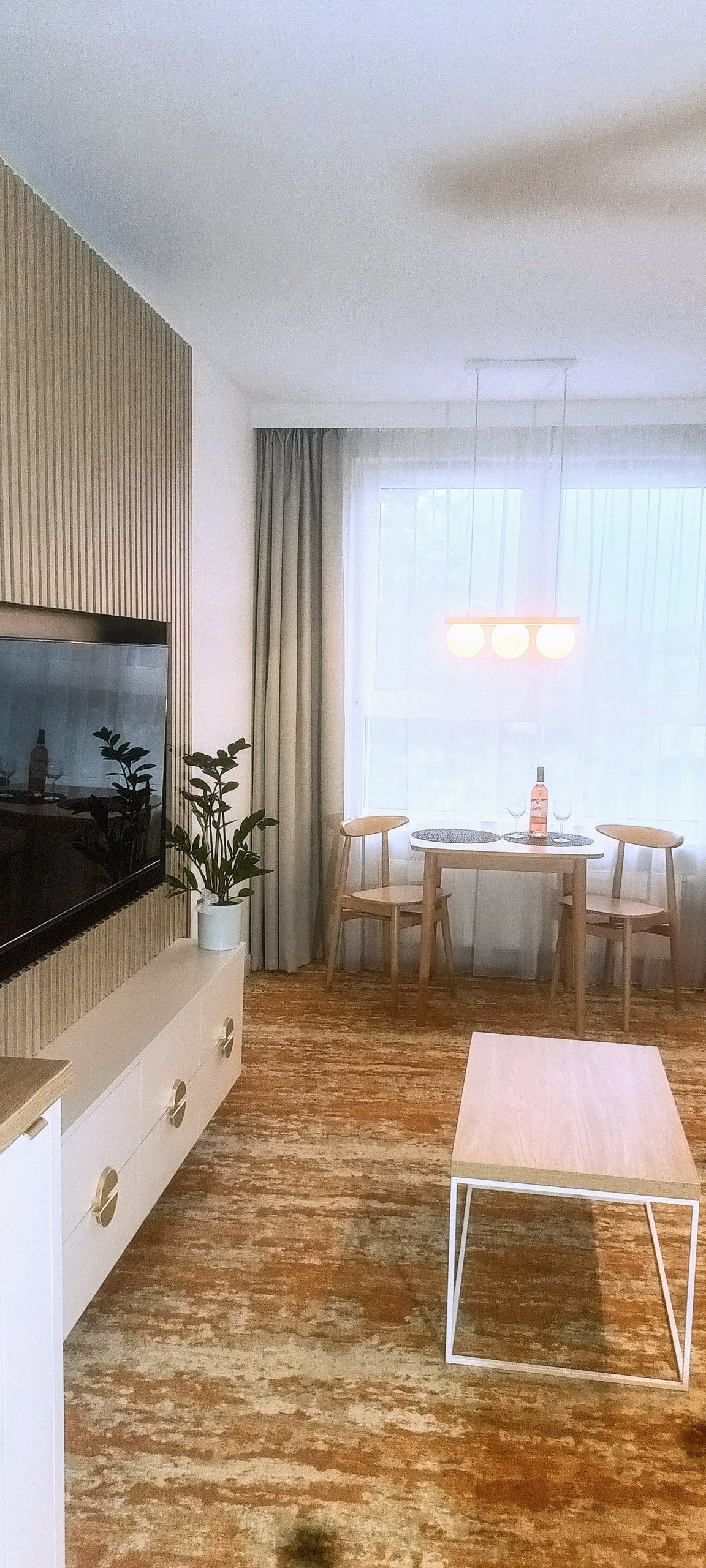 Bienvenido a un cómodo departamento de dos habitaciones ubicado en una ubicación muy atractiva, a 150 metros del mar en el complejo Aquamarina en Międzyzdroje. Está ubicada en la planta baja y consta de un dormitorio, baño y sala de estar con cocina americana. El apartamento incluye una terraza con muebles de jardín y una plaza de aparcamiento. Frente a la salida de la instalación hay una entrada a la playa. Aquamarina (edificio Onyx) tiene una piscina cubierta (cargo adicional en la recepción)
