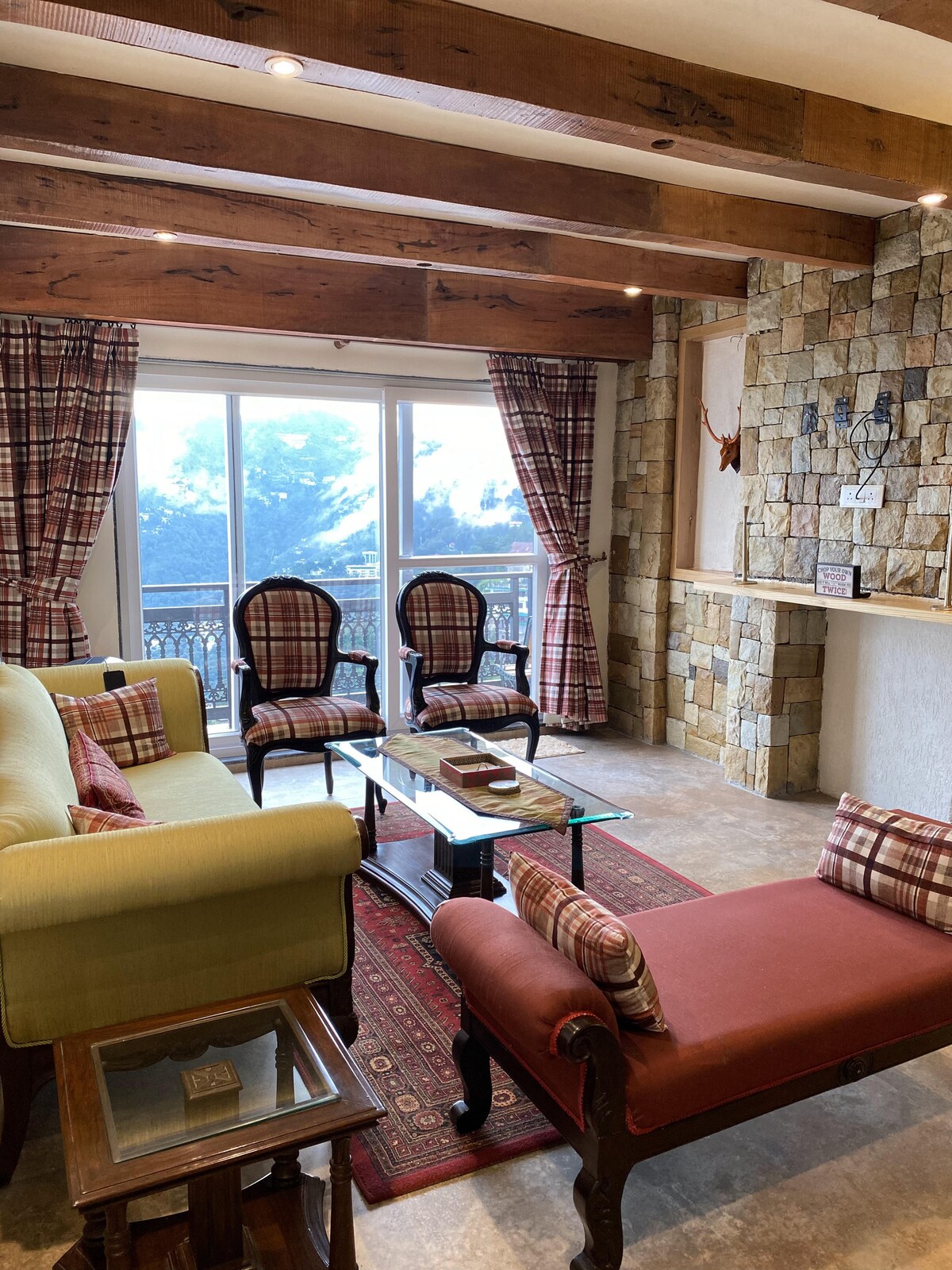 En medio de la serenidad de los Himalayas mientras se asoman a las verdes terrazas que se dirigen al valle que brilla por la noche. Chalet by The Manor House te da la bienvenida con la calidez de sus interiores de madera, situado en el corazón de Mussoorie - Mall Road, se puede conectar y descontento desde el ajetreo en cuestión de minutos. Los balcones bañados por el sol, los vientos frescos y frescos, las nubes que entran... cubiertos con un poco de comodidad de Uber... es todo lo que uno necesita para RELAJARSE.