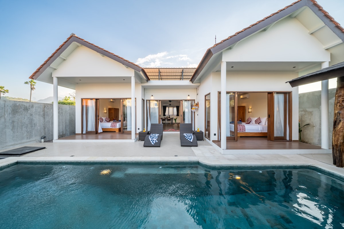 Stylish, comfortable and fully-equipped holiday home with spacious living room and three bedrooms and bathrooms, an infinity pool, uninterrupted sea view (with Lombok and the Gilis on the horizon), and direct beach access. It’s a quiet place surrounded by beautiful gardens, with mountains in the back, and sea / beach in the front. Several restaurants with local and international cuisine as well as a spa are just a few steps from the property.