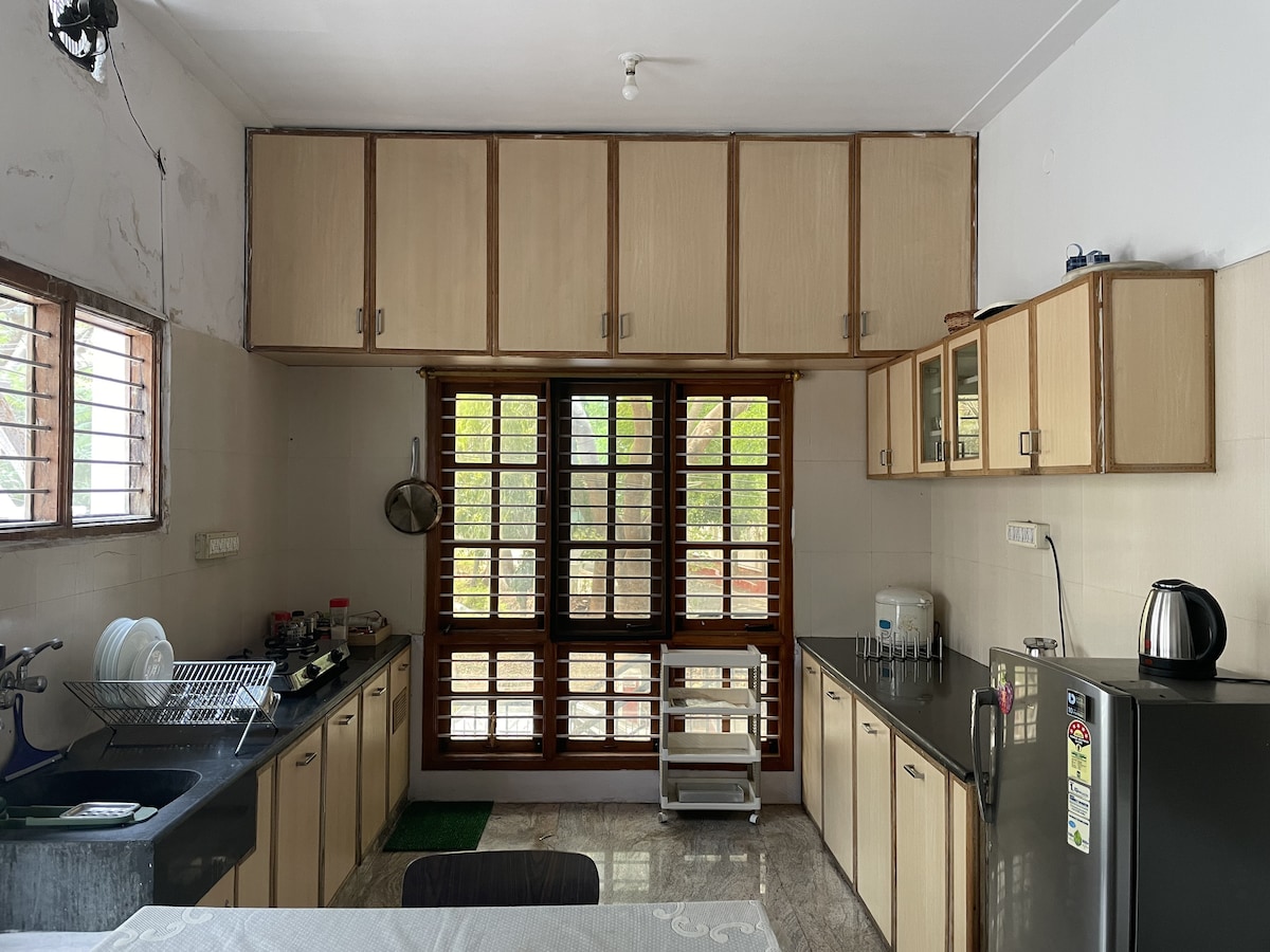 «Ananda Vihara» es una espaciosa casa de 2 dormitorios y 2,5 baños, donde lo «tradicional» se encuentra con lo «moderno». Es una hermosa casa antigua de Mysore que ha sido recientemente renovada. Disfruta de los hermosos suelos de óxido rojo, amplias salas de estar, un gran baño principal, dos cómodos dormitorios y una cocina tradicional pero moderna. El dormitorio principal tiene aire acondicionado y un baño adjunto. Hay estacionamiento en la entrada para 1 auto. Disfruta de la paz y la belleza de nuestro jardín. Aprovecha nuestra promoción de lanzamiento.