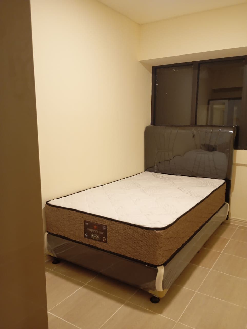 Apartamento estudio en la zona de MM2100 Cibitung con instalaciones de aguas termales onsen, gimnasio, pista de jogging, piscina, cancha de baloncesto y jardín de estilo japonés que se puede disfrutar para tomar el sol o relajarse por la tarde. El apartamento da al sur ligeramente en ángulo hacia el este, por lo que podrás disfrutar del precioso amanecer desde la cama. Además, la vista nocturna también es muy bonita con luces centelleantes de la ciudad y vehículos que pasan por la carretera de peaje MBZ.