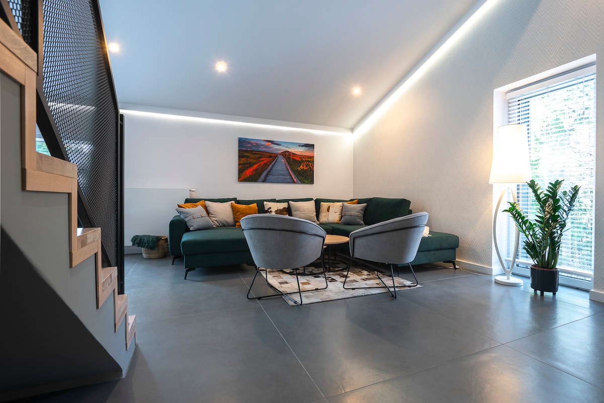 Un exclusivo apartamento de 70 m2 con sauna en el apartamento y una salida con jardín en una nueva villa con vistas doradas a las montañas gigantes desde todas las ventanas. Enorme terraza (40 m²) perfecta para relajarse. Sala con una cocina bien equipada y un sofá cama para dormir. Dormitorio con baño privado y colchón de alta calidad. Dos baños de los más altos estándares. Barrio tranquilo y pintoresco. Cerca de tiendas, restaurantes, senderos y atracciones de Szklarska Poręba. Espacio de estacionamiento con cargador de coche eléctrico.
