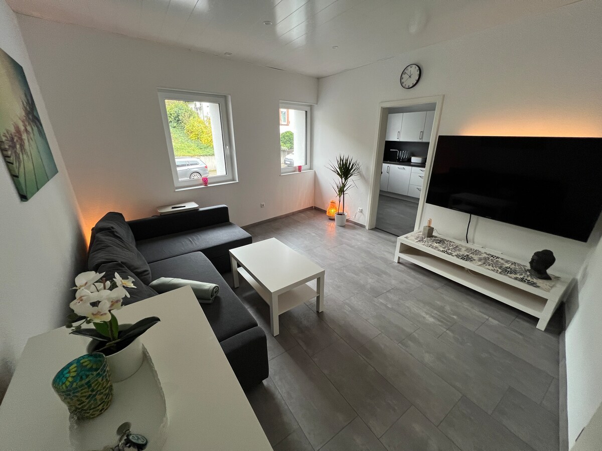 El hermoso departamento está ubicado en Niefern-Öschelbronn ( distrito de Niefern) . Se puede llegar a Pforzheim en 10 minutos en coche, la estación de tren más cercana se puede llegar a pie en 10 minutos. Después de la salida de la autopista ( A 8 ) del centro de Pforzheim se puede llegar al apartamento en cinco minutos. - Los huéspedes deben aceptar el uso de los datos de acceso al acuerdo del usuario por escrito antes de recibir el acceso wifi a través de Wi-Fi. Por supuesto, el formulario se enviará por correo electrónico con anticipación.