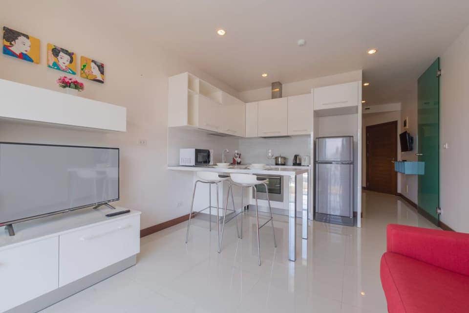 Nuevo apartamento de 1 dormitorio en el mejor condominio en el área de playa de Surin. La habitación tiene puerta corrediza para separar el espacio de la sala de estar y el dormitorio, 2 aparatos de aire acondicionado, baño grande, lavadora y cocina completa. El condominio tiene 6 piscinas, 2 gimnasios, saunas, estacionamiento gratuito.