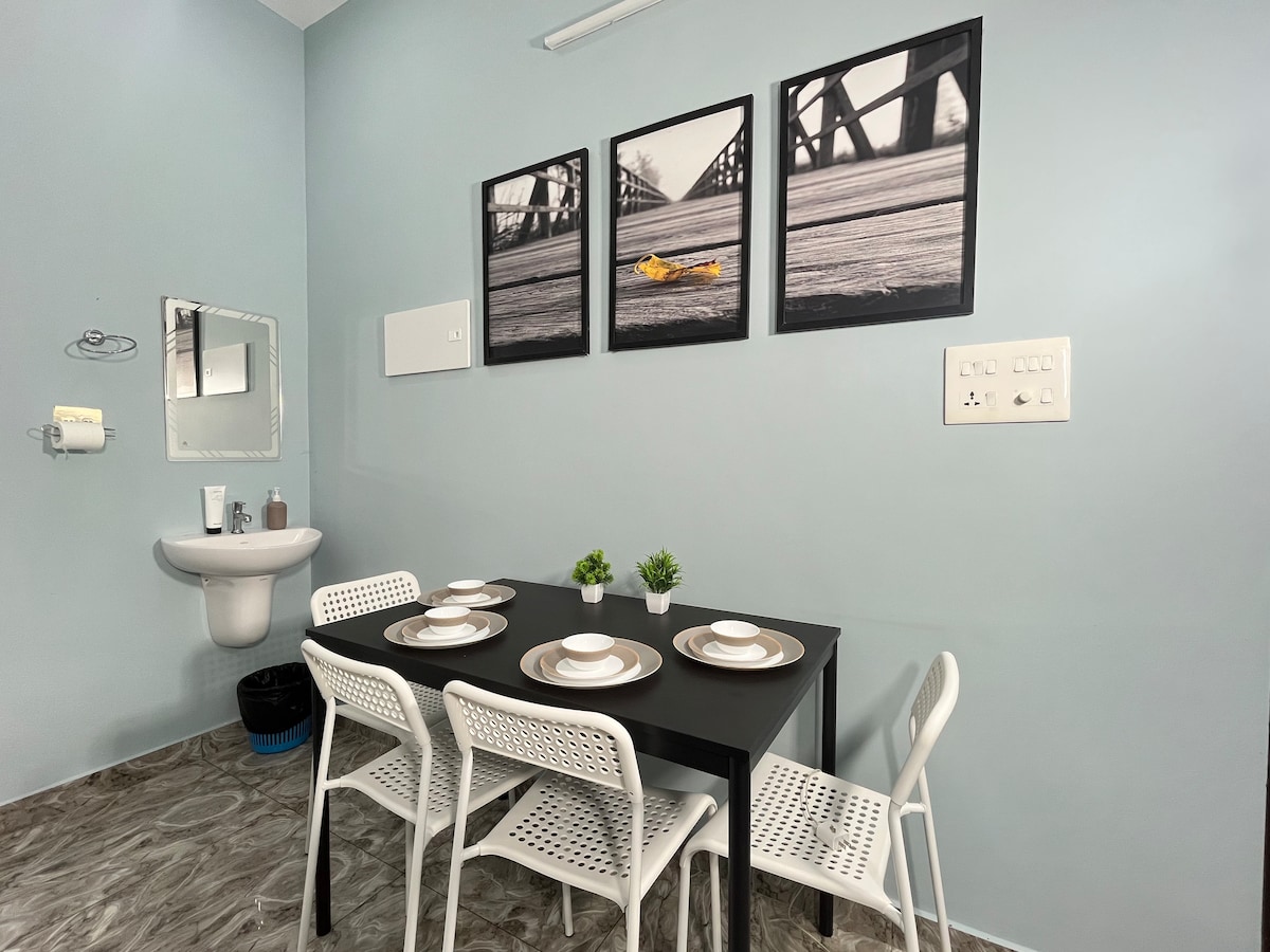 La casa tiene dos habitaciones dobles con aire acondicionado y baños adjuntos; una con calentador de agua y un baño común. Colchón doble adicional disponible en una habitación con cama. El espacioso pasillo tiene una mesa de comedor con 6 sillas, sofá y un diwan. La cocina con área de trabajo tiene nevera, purificador de agua, instalaciones de cocina, etc. El pasillo que conduce a la habitación Pooja y un patio al lado de un patio central son ideales para relajarse. Todos están bien ventilados con mosquiteros y para uso exclusivo de los huéspedes.