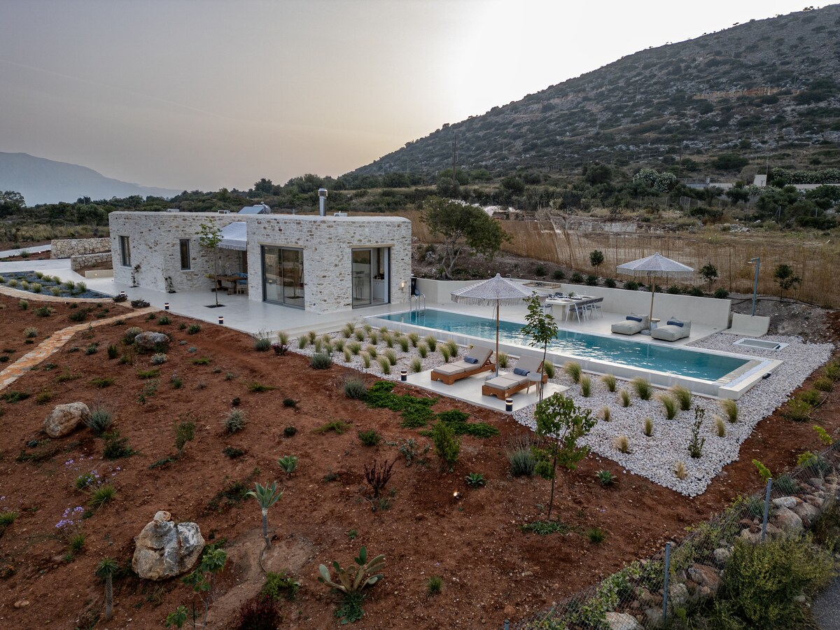 Discover the exquisite Olea Villas, a luxurious retreat in Crete offering two spacious independent villas nestled in a serene four-acre olive grove. Each villa boasts ultimate privacy with its own pool and jacuzzi, providing a truly exclusive experience. Overlooking the stunning Loutraki bay (170 meters from the beach), these stone-built architectural marvels feature airy rooms, large windows, and pastel interiors that seamlessly blend simple elegance with comfort and luxury.