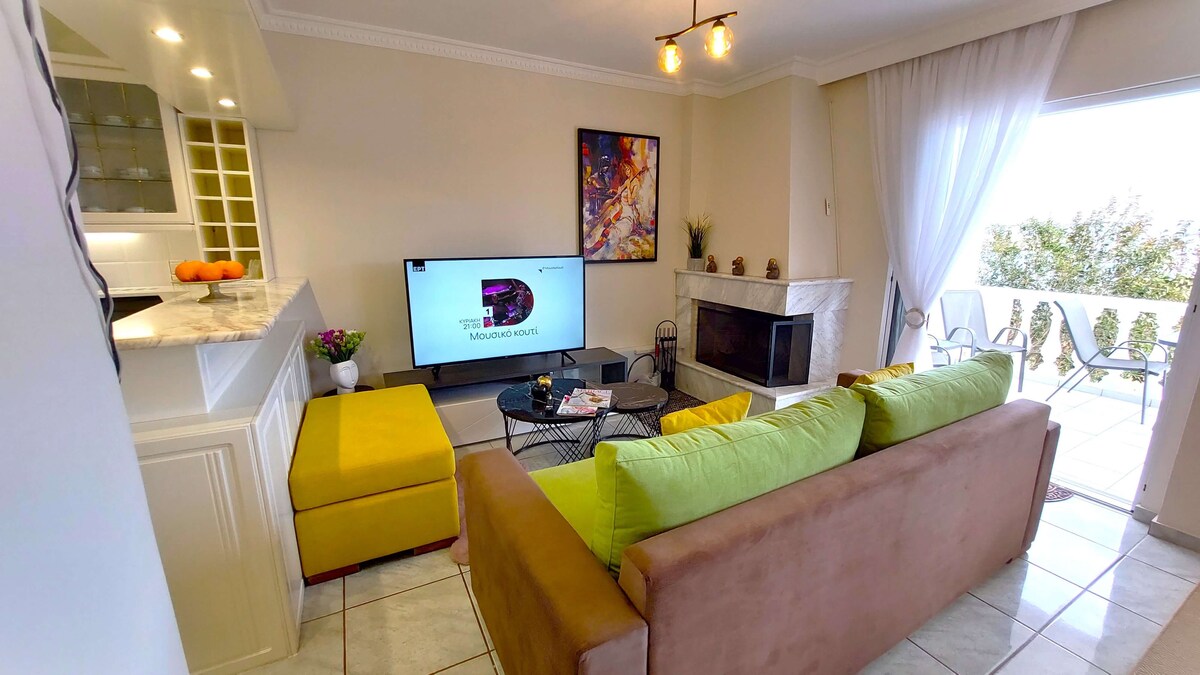 Es un apartamento independiente y cómodo, de 60 m2 con acceso directo a un hermoso jardín y una gran vista al mar desde el salón y el dormitorio. Situado en una zona muy tranquila de Artemida (suburbio de Atenas) a 1,8 km del centro de la ciudad, a 15 minutos en coche del aeropuerto y a 20 minutos del puerto de Rafina. Nuestros huéspedes pueden disfrutar de momentos de relajación entre vuelos o reservar unas vacaciones completas lejos del ruido del centro, pero lo suficientemente cerca (1,8 km) si quieres un restaurante o un pub.