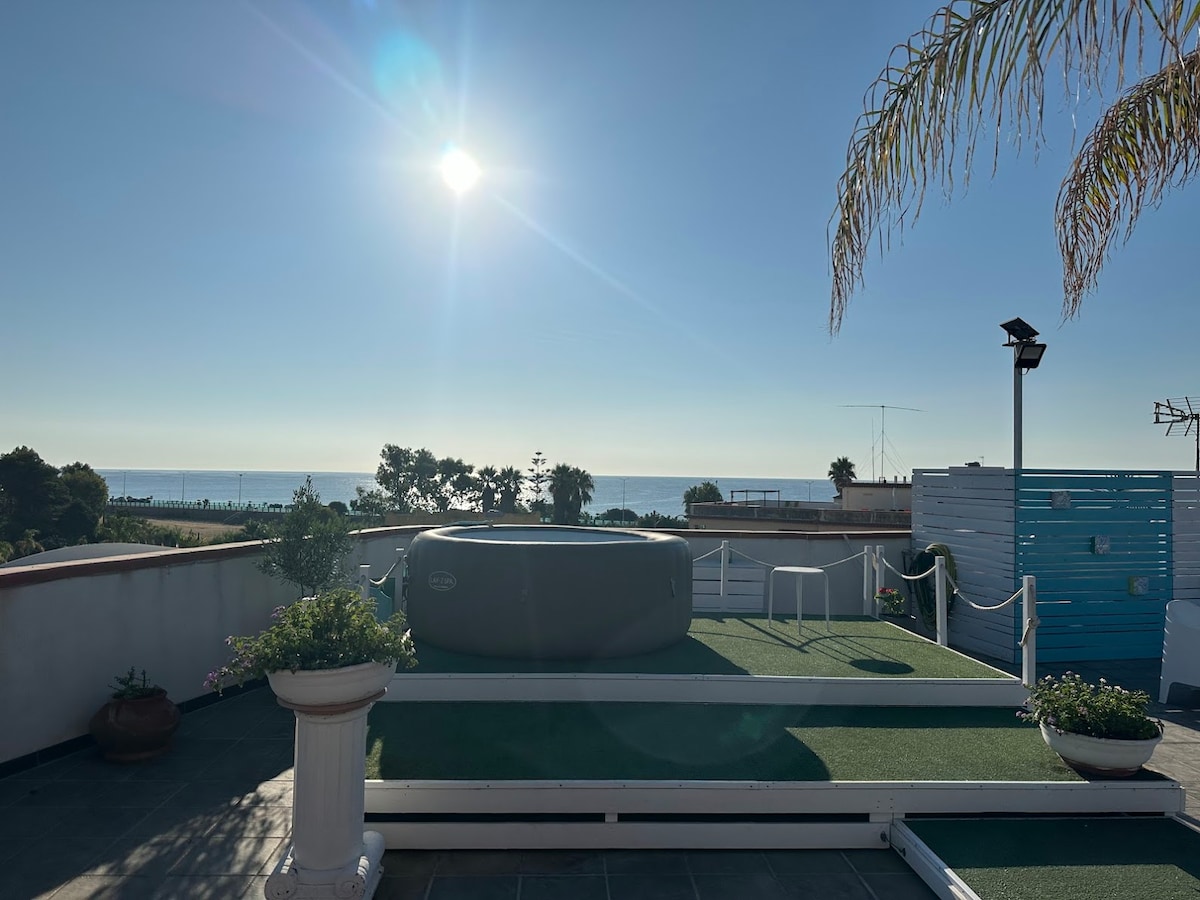 La casa es un refugio que celebra la belleza de la cultura local, decorada con cerámica Caltagirone. La cocina rústica de estilo siciliano es el corazón de la casa con azulejos de colores. Cada detalle en este entorno contribuye a la sensación de hogar, donde la tradición siciliana se mezcla con la comodidad moderna. El apartamento con un gran patio con vistas al mar es perfecto para parejas o familias pequeñas que buscan relajación y simplicidad.
