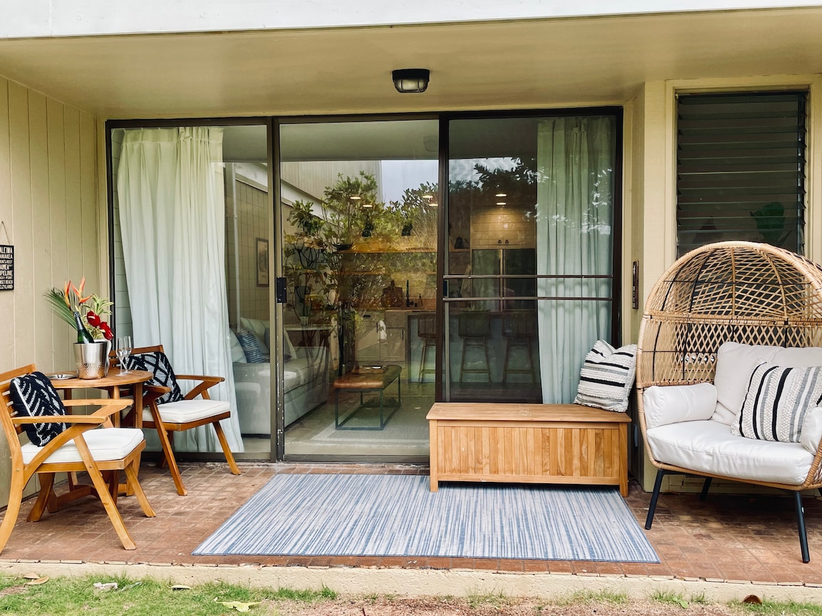 ¿Por qué a los huéspedes les ENCANTA nuestro alojamiento? ¿Por qué los huéspedes lo encuentran tan valioso? - Relajante apartamento de una sola planta con 3 dormitorios en una comunidad cerrada con piscina con vistas al mar y a la montaña - Jacuzzi privado y patio trasero con barbacoa para mañanas lentas y reuniones nocturnas bajo las estrellas - Ideal para grupos que buscan comodidad y espacio para niños y abuelos. - Cocina completa, lavadora/secadora y agua filtrada para que ahorres en comida y en equipaje - Aparcamiento gratuito para hasta 5 coches - A 5 minutos en coche de playas poco concurridas y una escapada tranquila de las multitudes de Waikiki