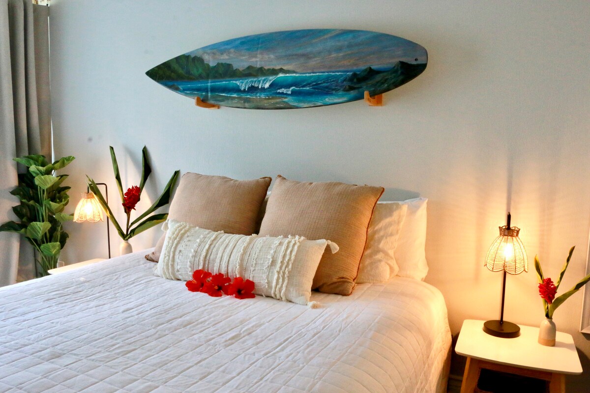 Alquiler vacacional legal por noche (sin contratos de 30 días) Una acogedora unidad de estilo isleño con una cama tipo loft, perfecta para una auténtica escapada hawaiana. La unidad incluye WiFi de alta velocidad, TV inteligente de 65 pulgadas, aire acondicionado de unidad dividida, sauna, ducha al aire libre, gimnasio al aire libre, solárium y acceso privado. Ubicado a pocos pasos de la famosa bahía de Waimea y otros hermosos lugares, este espacio ofrece comodidad, comodidad y encanto de la isla.