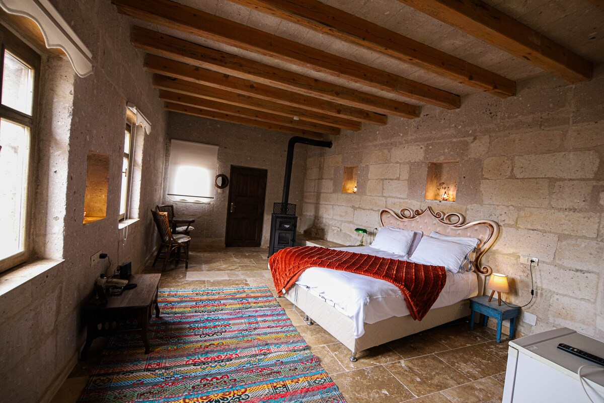 Ubicada en una escuela de seminarios del siglo XVIII, Sedirli Konak Cave Room ofrece una mezcla perfecta de historia y comodidad moderna. Esta habitación única cuenta con una auténtica arquitectura tallada en piedra y un porche tranquilo para relajarte y disfrutar del ambiente. Restaurado con cuidado en 2021, combina el encanto tradicional con las comodidades modernas, proporcionando una escapada tranquila para los viajeros que buscan una auténtica experiencia en la cueva Capadocia con una historia arraigada en la historia.