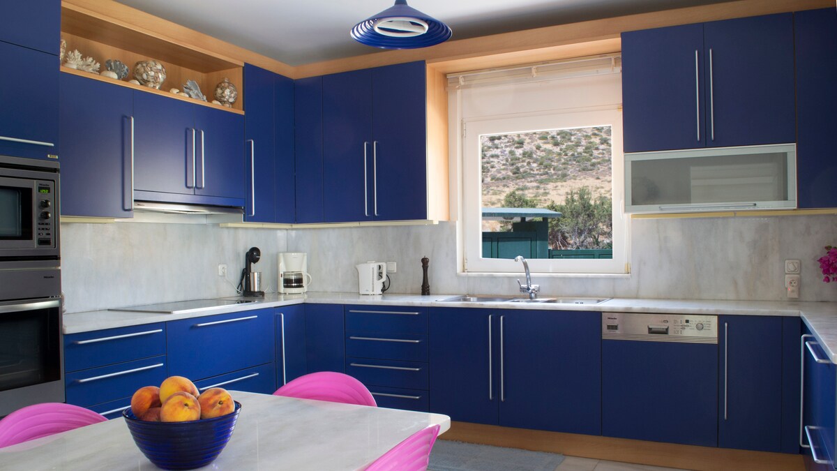Luxury, 3-story Villa, 45 minutes from Athens, yet, feels like being on an island. Surrounded by golden beaches, located in a picturesque village. Look at the reviews at Airbnb, Vrbo and trip advisor!