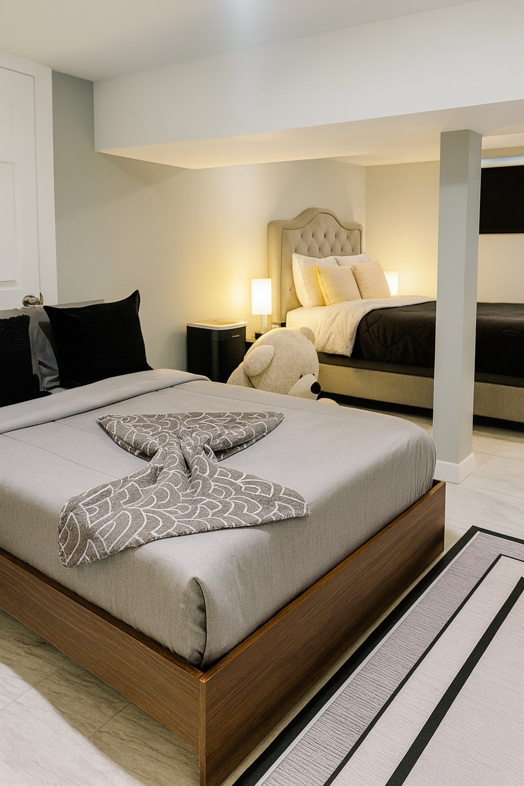 Sótano terminado en Harrison. Una cama tamaño queen, una cama tamaño completo y un sofá cama. Baño grande. Apartamento espacioso. Cocina pequeña, nevera, microondas. Lavadora y secadora. A poca distancia de la estación de tren de Harrison y los estadios. Calle tranquila. Zona segura para caminar día y noche para desplazarse a Nueva York en tren. Aparcamiento gratuito en el patio trasero. A 7 kilómetros del estadio Metlife y del centro comercial American Dream. A 12 minutos en coche. TV con Netflix, wifi rápido, altavoz de baño Bluetooth