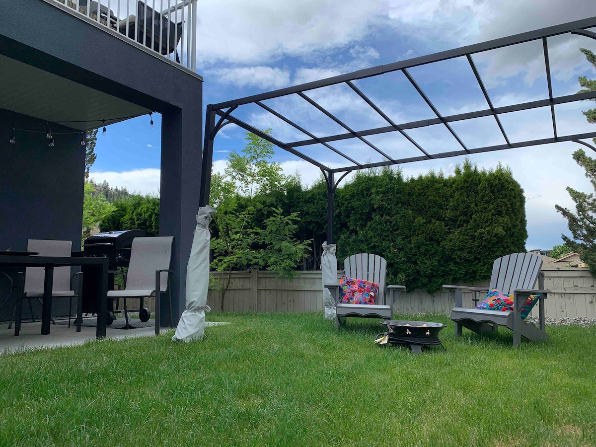 En un barrio residencial tranquilo en la región vinícola. A minutos del centro de Kelowna, playas, parques, rutas de senderismo, bodegas y pistas de esquí. Todas las comodidades de un hogar con tu propia plaza de aparcamiento y entrada privada. Suite privada de 680 pies cuadrados con caja de seguridad. Totalmente equipado y muy limpio. Amplio salón, lavabos dobles en el baño, lavadora/secadora y cocina completa. Precioso patio al aire libre con vistas al jardín y a las colinas a lo lejos. El apartamento está en el nivel inferior de una casa donde vive el anfitrión.